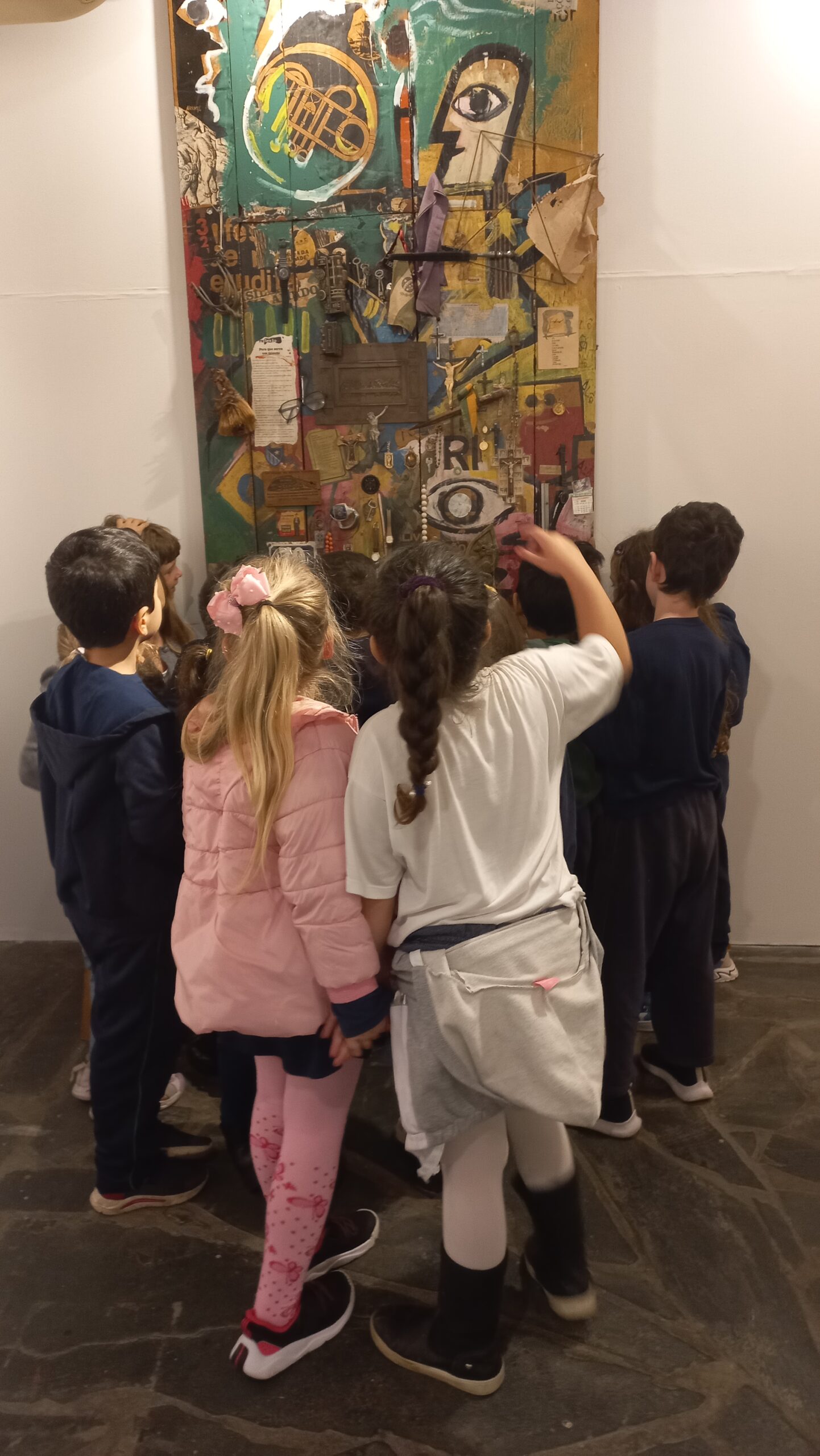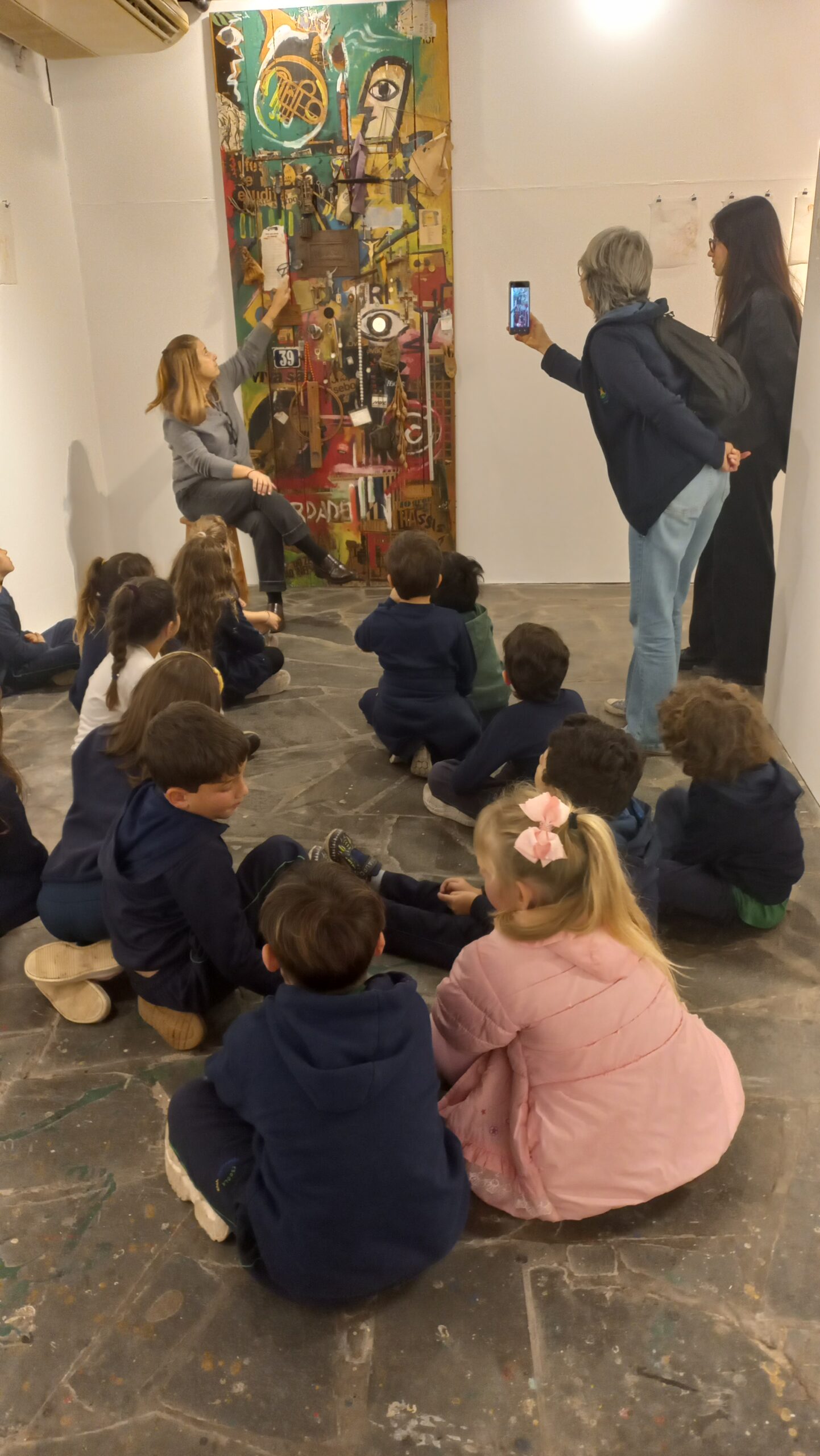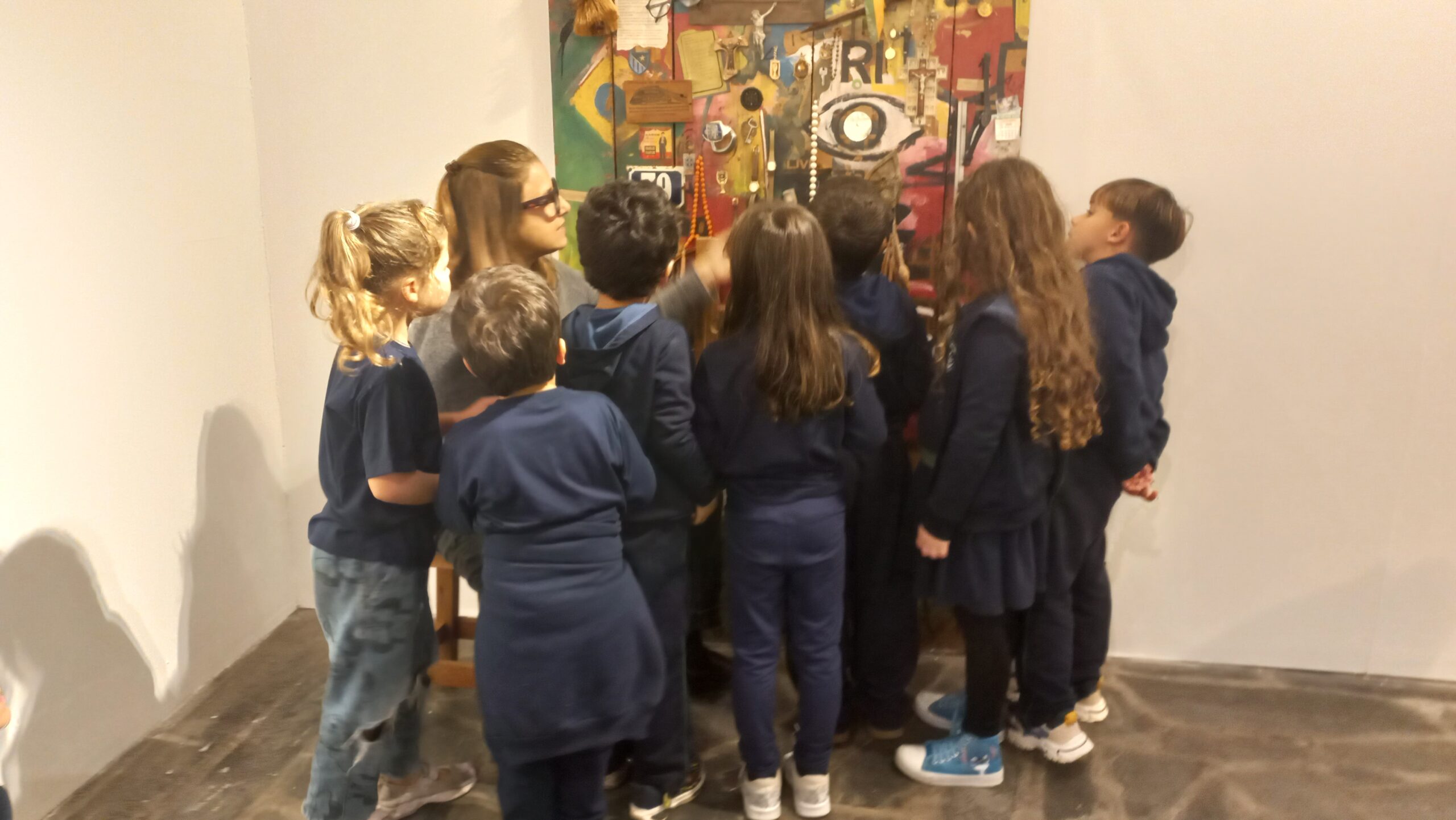 Ao todo, 14 alunos da turma do infantil, a maioria com 5 anos, participaram da visita guiada por Monique Fonseca, diretora artística da instituição e autora de livros do artista. “Estamos fazendo a releitura de três obras de Hassis: Porta Secreta; Super-Herói e Marina”, diz a professora de Artes Visuais, Denise Salerno, que resolveu levar os alunos para conhecer o universo artístico do pintor e desenhista.