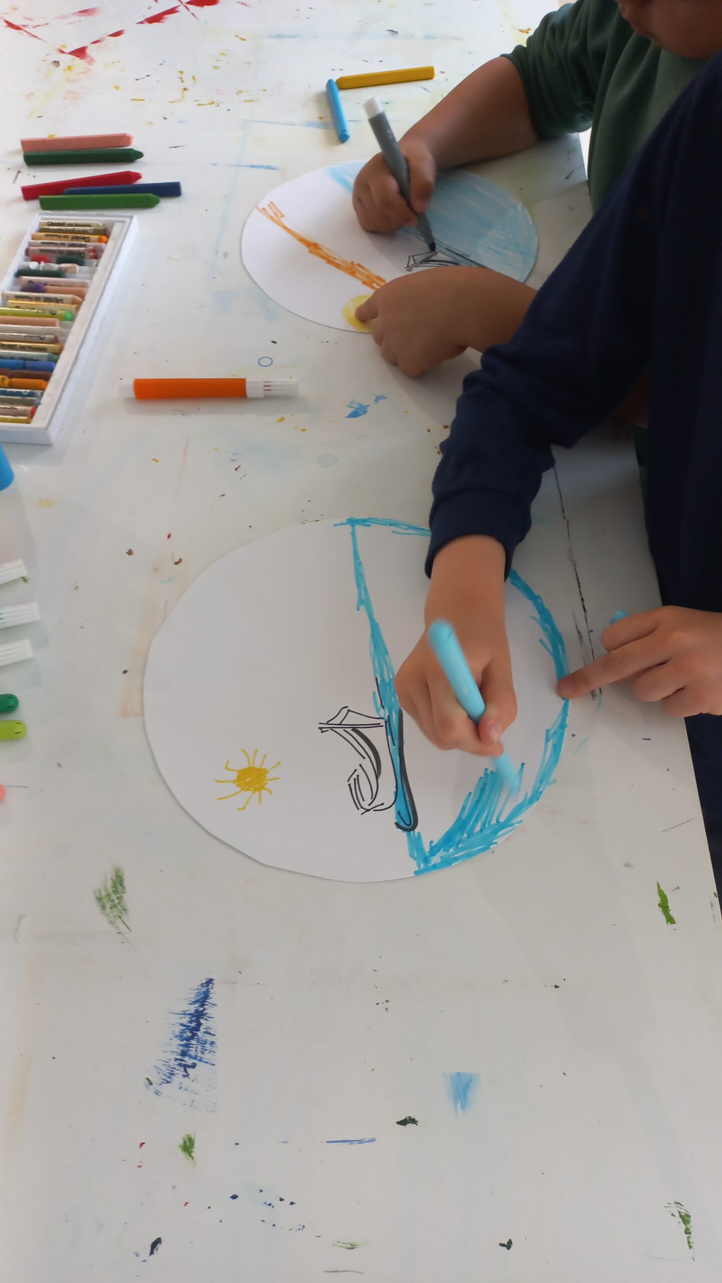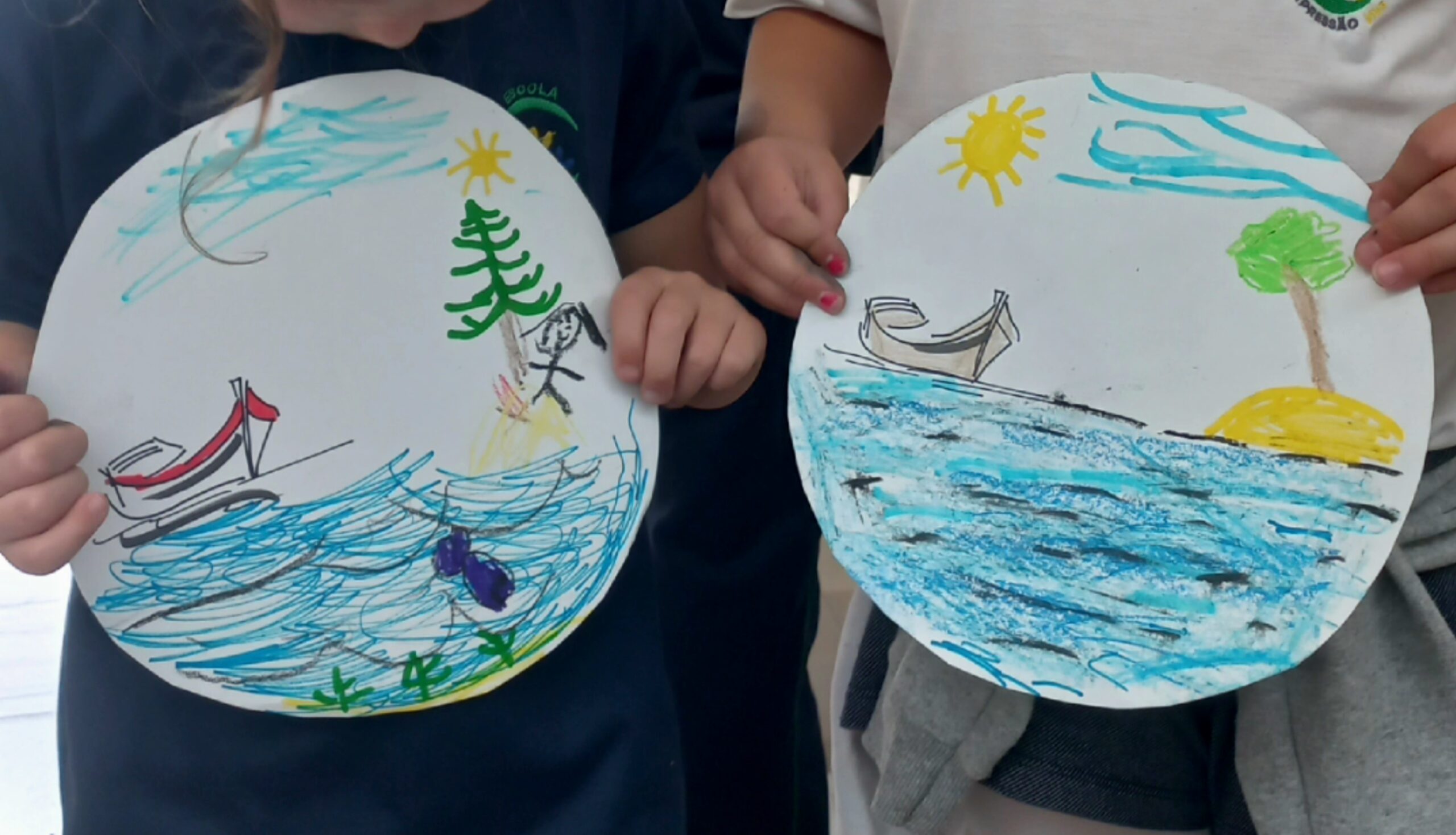 Ao final, a criançada foi para Sala de Artes e cada um se expressou com desenhos, cores e figuras como sereia, tartaruga, além de coqueiros, pedras, mar, barcos e ilhas. Resultado da verdadeira viagem -cheia de cores, história e descobertas – em torno das obras de Hassis.