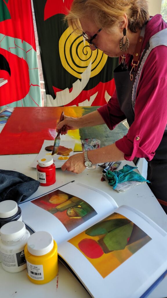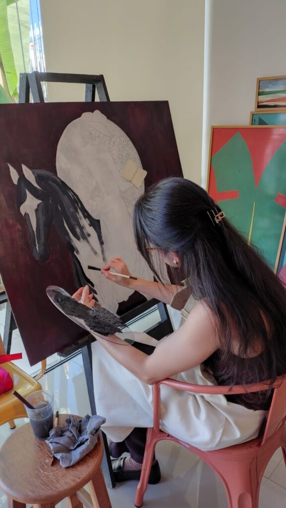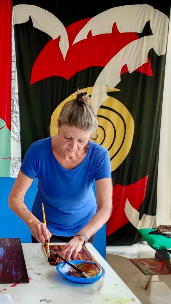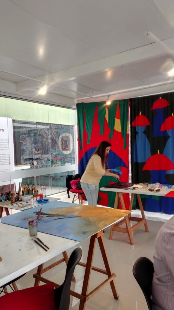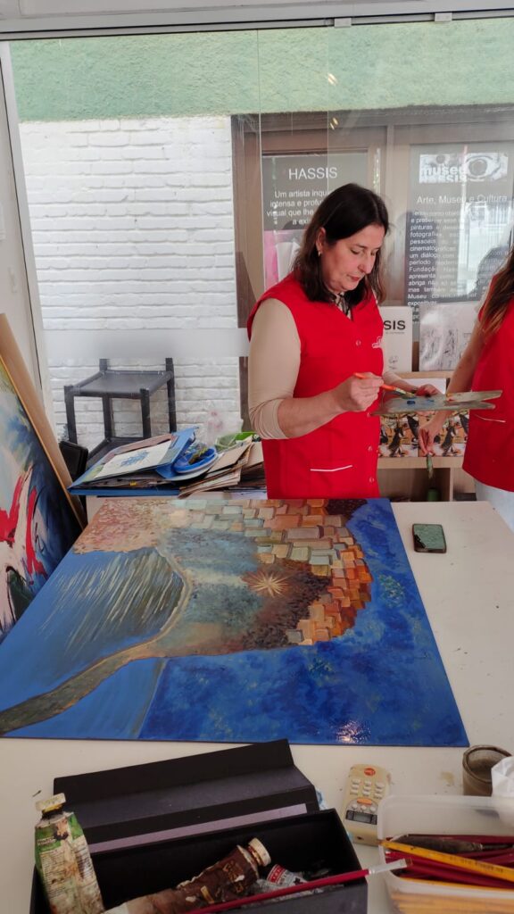 “Para mim, sempre é muito bom estar em contato com as artes. Comecei a pintar em 2002, uma fase em que vivi a arte de forma muito intensa, profunda e transformadora. Depois disso, fiquei um período afastada, mas agora estou voltando — e essa retomada tem sido uma experiência rica, afetiva e cheia de significado. Estar novamente diante das cores, dos gestos e das sensações me reconecta comigo mesma e reabre um espaço de criação que eu sentia muita falta.