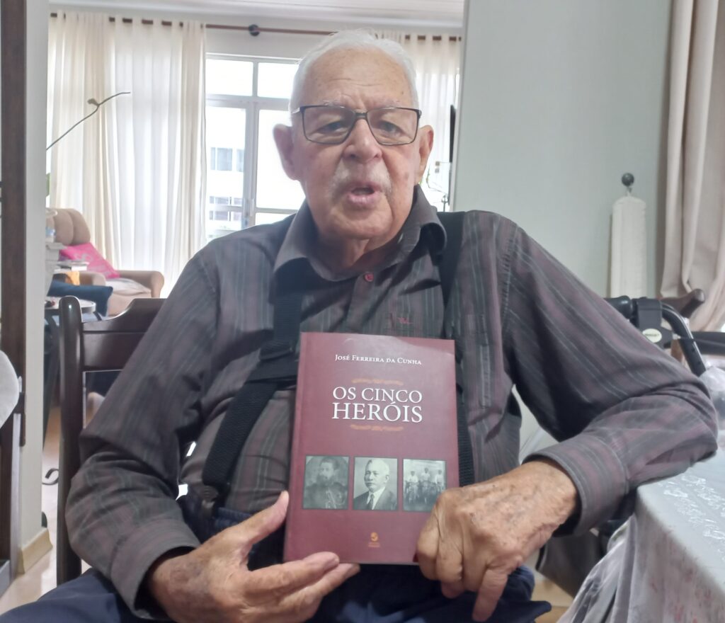 Estamos falando do senhor José Ferreira da Cunha, de 96 anos, um cidadão lúcido e cheio de histórias para contar. Também pudera, nada acomodado viveu intensamente tanto na área profissional como pessoal. Sua trajetória acabou virando um livro de memórias, organizado pela neta Marina e lançado em 2024 (foto).