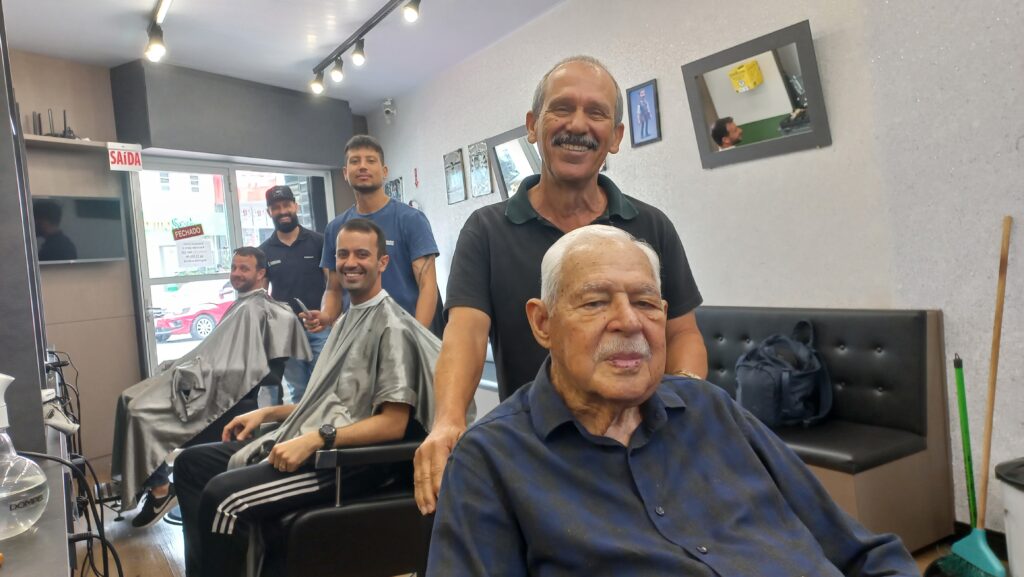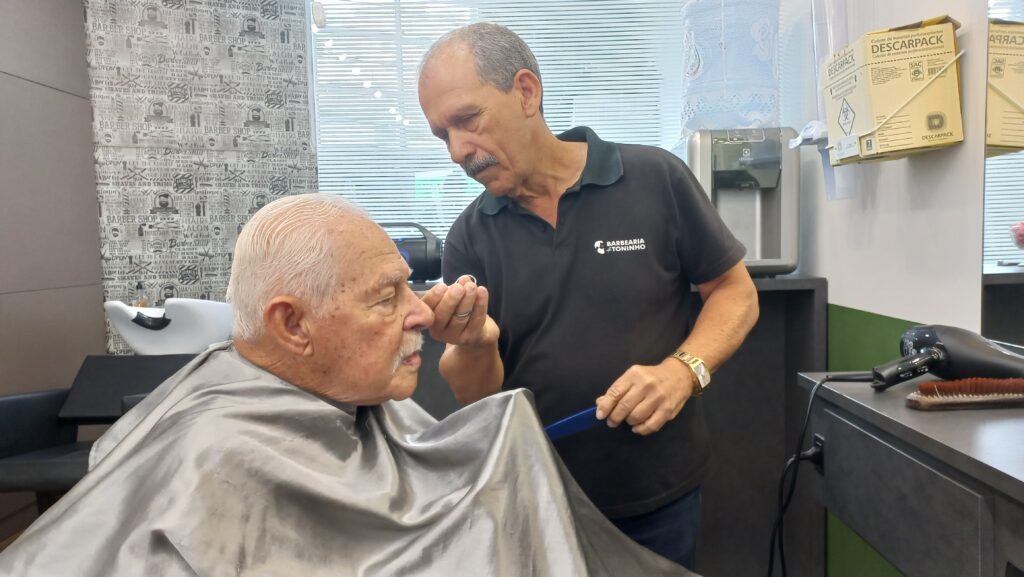 Uma vez por mês, frequenta as reuniões da loja maçônica e a cada 15 dias faz uma visita ao barbeiro Toninho. “Seu Cunha foi o meu primeiro cliente, quando abri a barbearia em Coqueiros há 25 anos”, recorda Antônio Carlos Maciel dos Santos, o popular Toninho. Vaidoso, seu José da Cunha corta os cabelos, apara os fios do bigode e faz a barba.