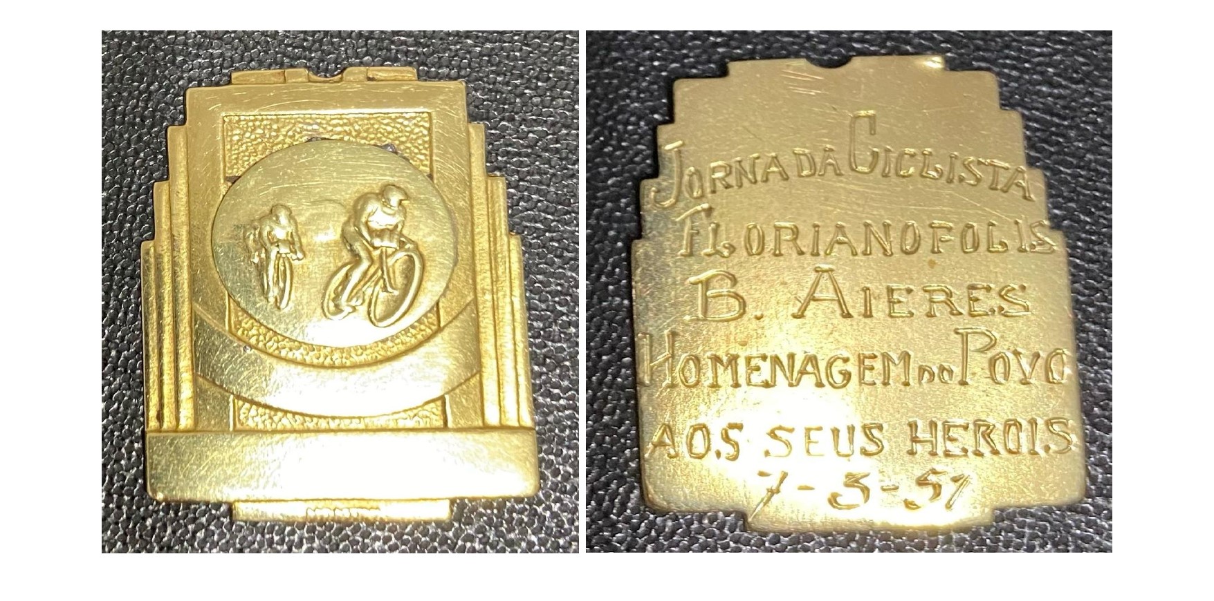 Medalha de ouro entregue aos ciclistas pela Câmara de Vereadores de Florianópolis e titulo de Heróis.