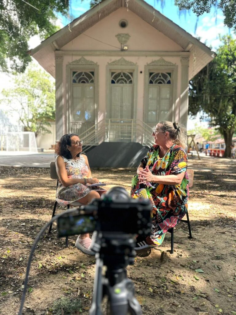 Editora da Folha de Coqueiros, jornalista Sibyla Loureiro, e professora Cláudia Duwe, do 5º ano.