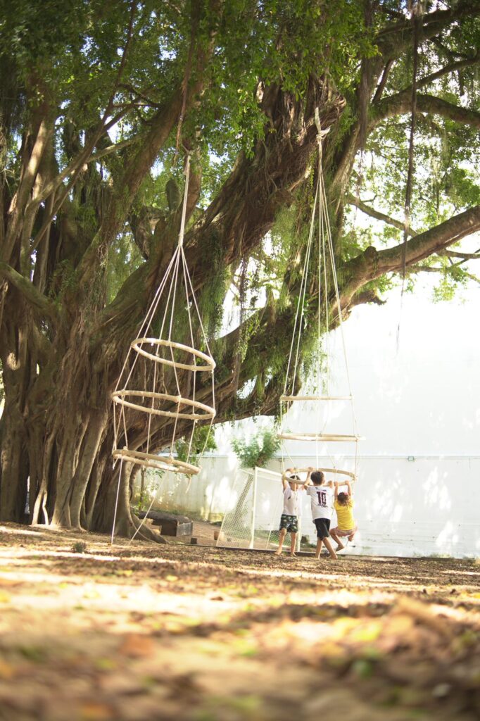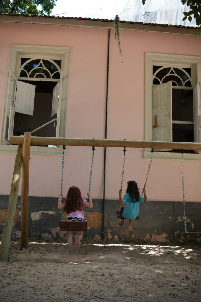 “Então, a gente entende que as crianças precisam tirar os dois pezinhos do chão, precisam se enxergar diante de desafios, mas com segurança, gradativamente, respeitando as idades. É esse tipo de escola que temos aqui, com esse pátio ampliado, com brinquedos projetados, com profissionais em constante formação para que não sejamos adultos que atendem demandas, mas sim que provoquemos novas respostas para novos desafios. E o melhor: em meio à natureza”, avalia Cláudia.