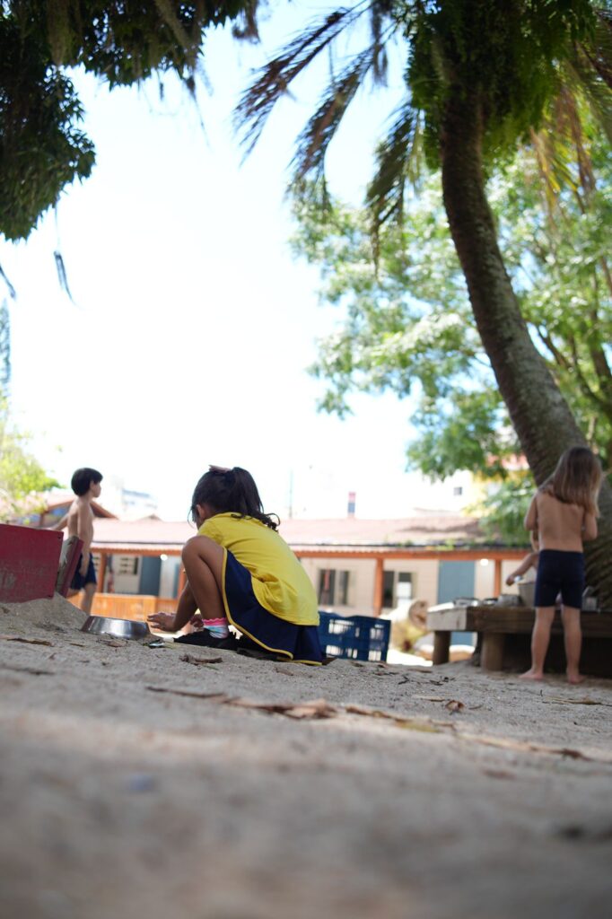 E como estímulo à imaginação, ao aprendizado e ao desenvolvimento das crianças, está o pátio da escola. Considerado uma extensão das salas de aula, o pátio é um aliado do planejamento pedagógico. Ali, as crianças brincam, sobem em árvores, tocam o pé na terra, brincam com água. E tudo isso estimula o cérebro e ativa nas crianças outras vivências que a chamada vida moderna tem impedido de acontecer. Já temos muitas pesquisas, em nível mundial, afirmando que a falta de tais vivências prejudica o desenvolvimento integral das crianças.