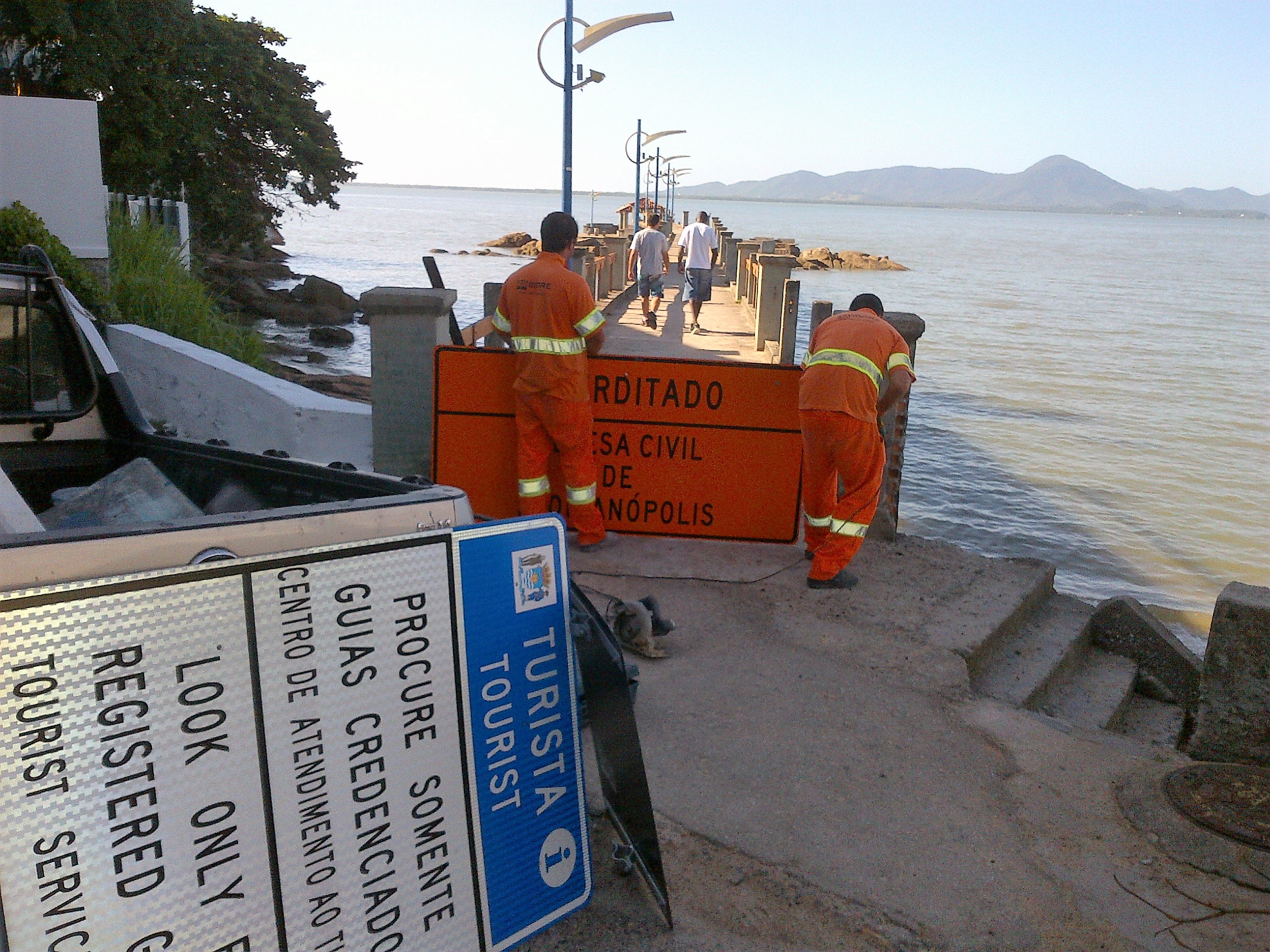 Março de 2012: O trapiche é interditado pela Defesa Civil devido à destruição das muretas de proteção. A sinalização é derrubada em menos de 30 dias.