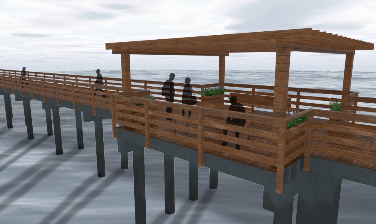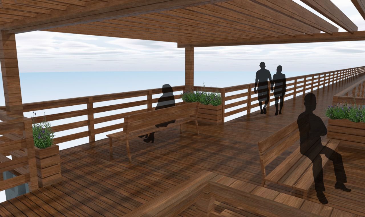 Proposta moderna de equipamento público de lazer, de contemplação, e de preservação da memória. Ideia é manter o trapiche no mesmo local e utilizar projeto inicial da prefeitura com novos itens.