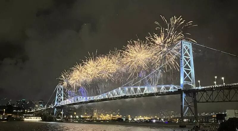 Réveillon Floripa -100 Anos de Luz traz 9 balsas e a tradicional cascata na Ponte.