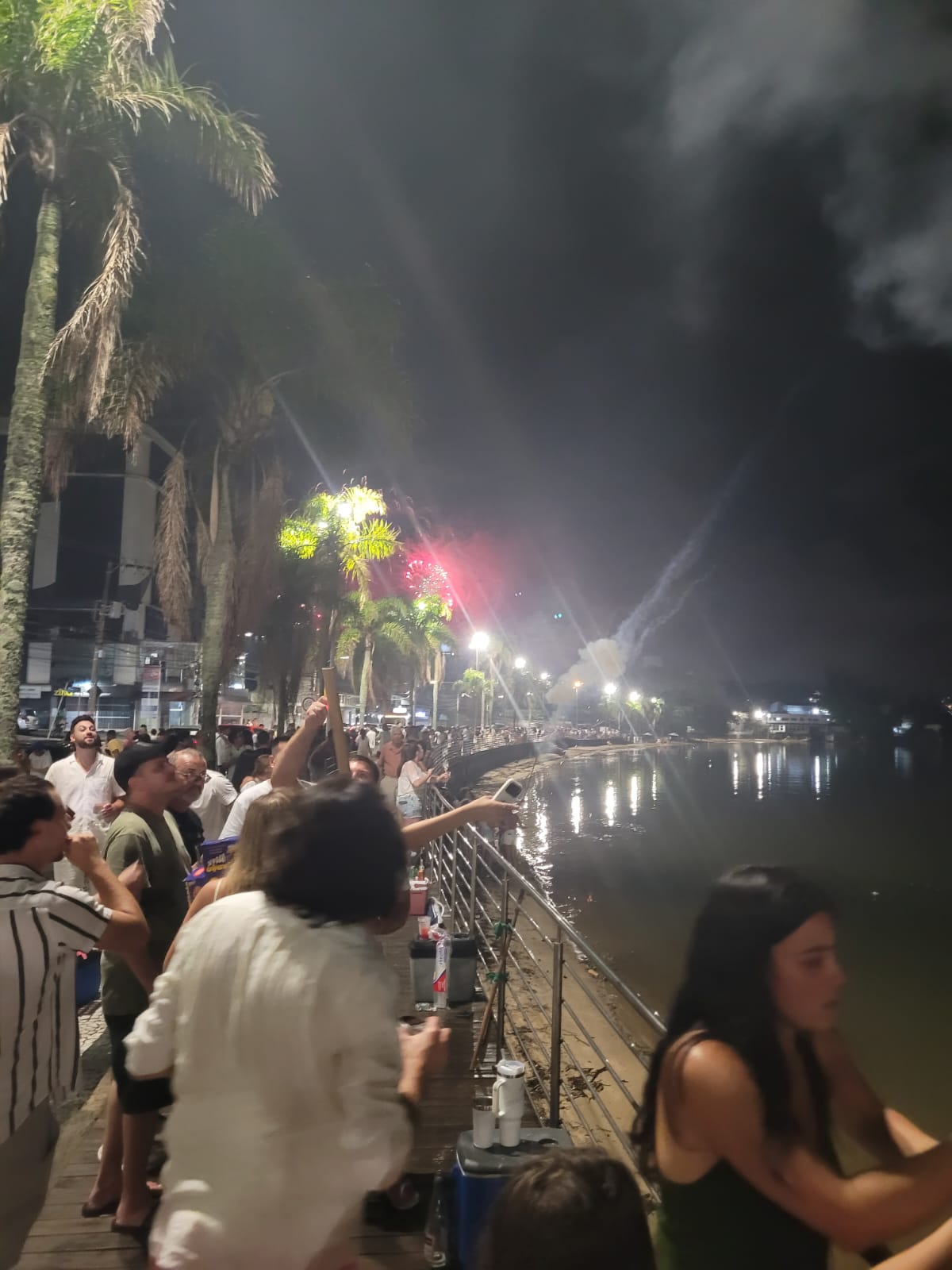 Mais uma vez a Praia da Saudade foi palco de uma bela festa. Um grande número de pessoas se reuniu na orla para celebrar a chegada de 2026 e assistir à tradicional queima de fogos. Mesmo com maré alta e água imprópria para o banho, o pessoal acomodou as cadeiras no pequeno espaço da areia e sentou à beira-mar. O mesmo aconteceu nos deques que ficaram repleto de gente à espera da virada do ano.