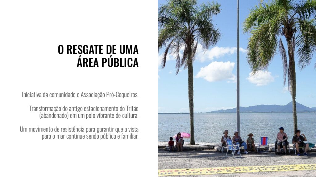 Comunidade, Memória e Resistência Organizada por moradores e artistas através da Associação Pró-Coqueiros, a Ocupação Cultural nasceu em 2024 após a comunidade realizar uma “procissão luminosa” para cobrar iluminação e segurança para a área.