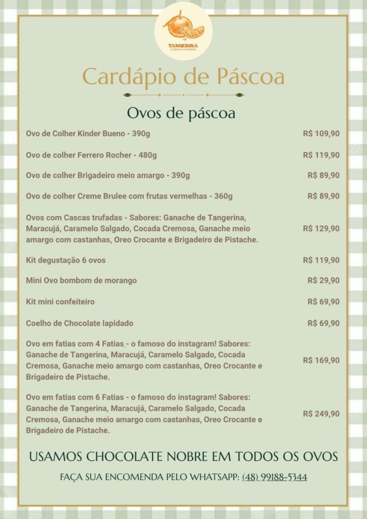 Lembramos que nossas encomendas de Ovos de Páscoa Artesanais já estão a todo vapor! Não deixe para a última hora: você já pode garantir o seu e assegurar essas doçuras exclusivas para sua celebração. Temos também opções a pronta entrega!