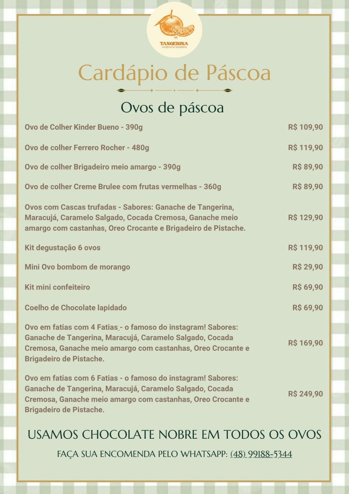 Lembramos que nossas encomendas de Ovos de Páscoa Artesanais já estão a todo vapor! Não deixe para a última hora: você já pode garantir o seu e assegurar essas doçuras exclusivas para sua celebração. Temos também opções a pronta entrega!
