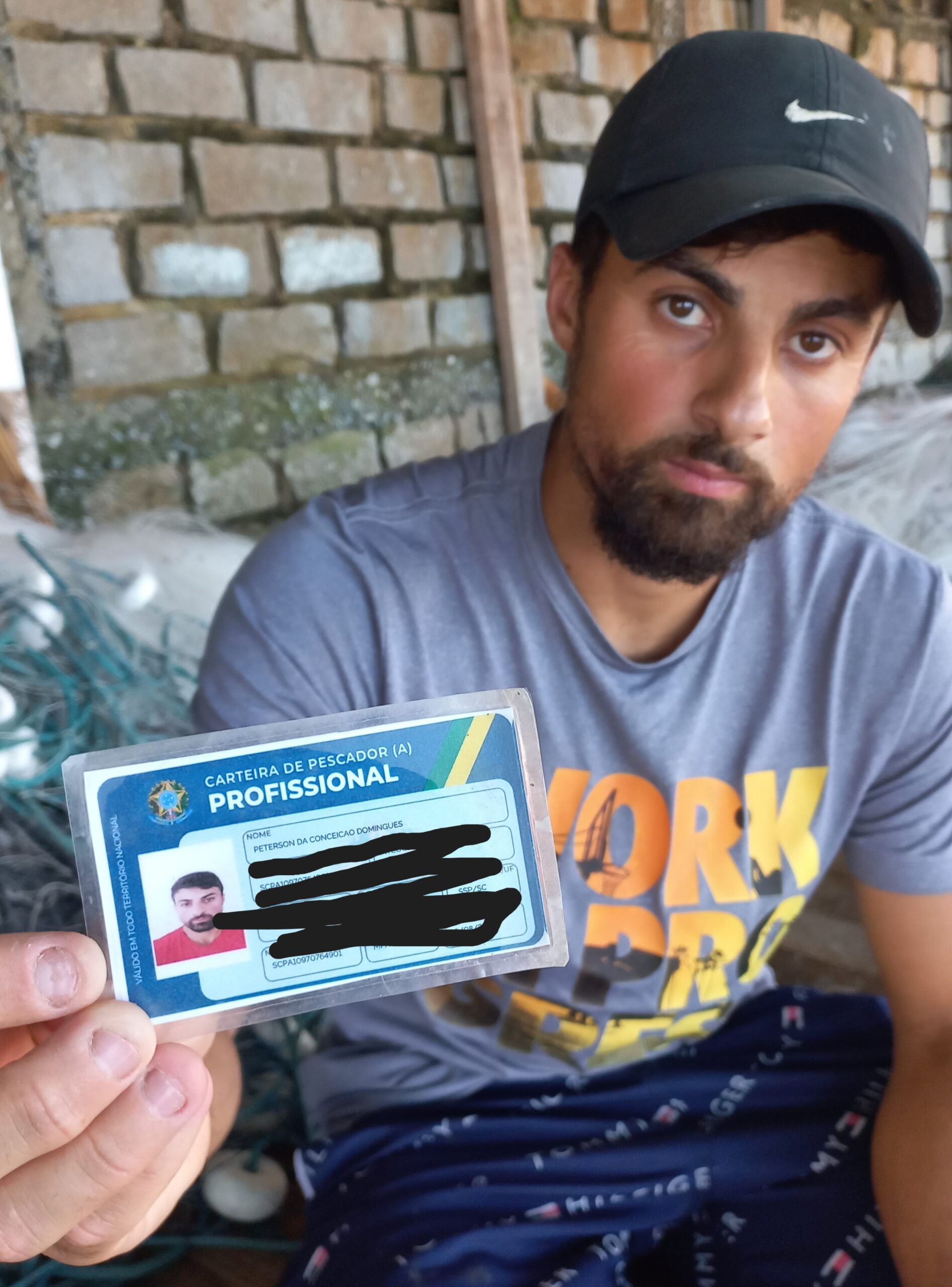 “Aprendi a pescar com o meu falecido pai e exerço a atividade desde criança. E é da pesca que tiro o sustento da minha família, pois sou casado e tenho um filho pequeno. Mesmo assim, não sei, até agora, para onde levar o material de trabalho, embora nós, pescadores, temos proteção de leis municipal, estadual e federal”, coloca Peterson Domingues, ao mostrar a sua carteira de pescador.