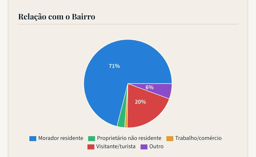 O levantamento traça um perfil claro de quem está por trás da cobrança: a demanda é liderada por quem vive o bairro: 88,8% dos apoiadores são moradores fixos de Coqueiros, seguidos por frequentadores assíduos (5,6%).