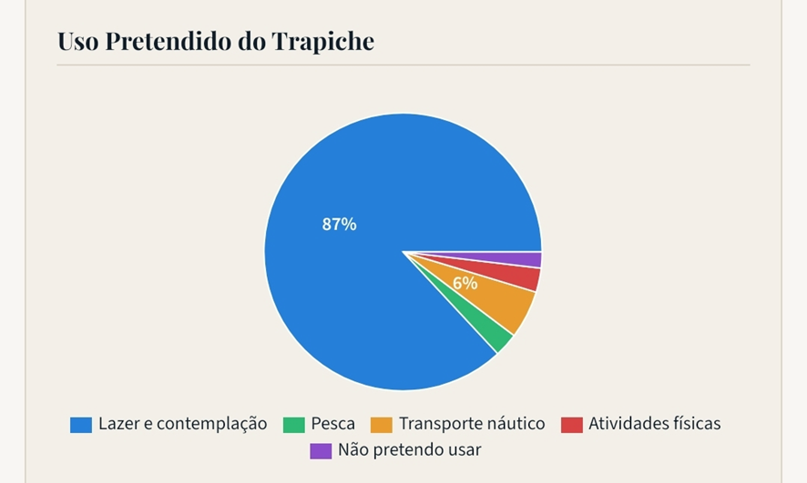Para os moradores, o trapiche não é apenas uma estrutura de madeira, mas um equipamento vital para a saúde social do bairro. Quando questionados sobre o uso pretendido após a entrega, os números impressionam: