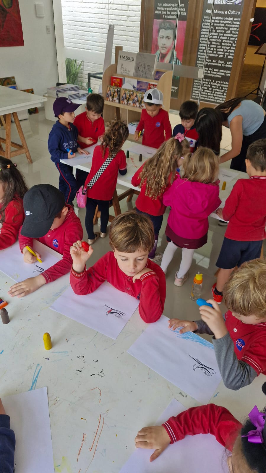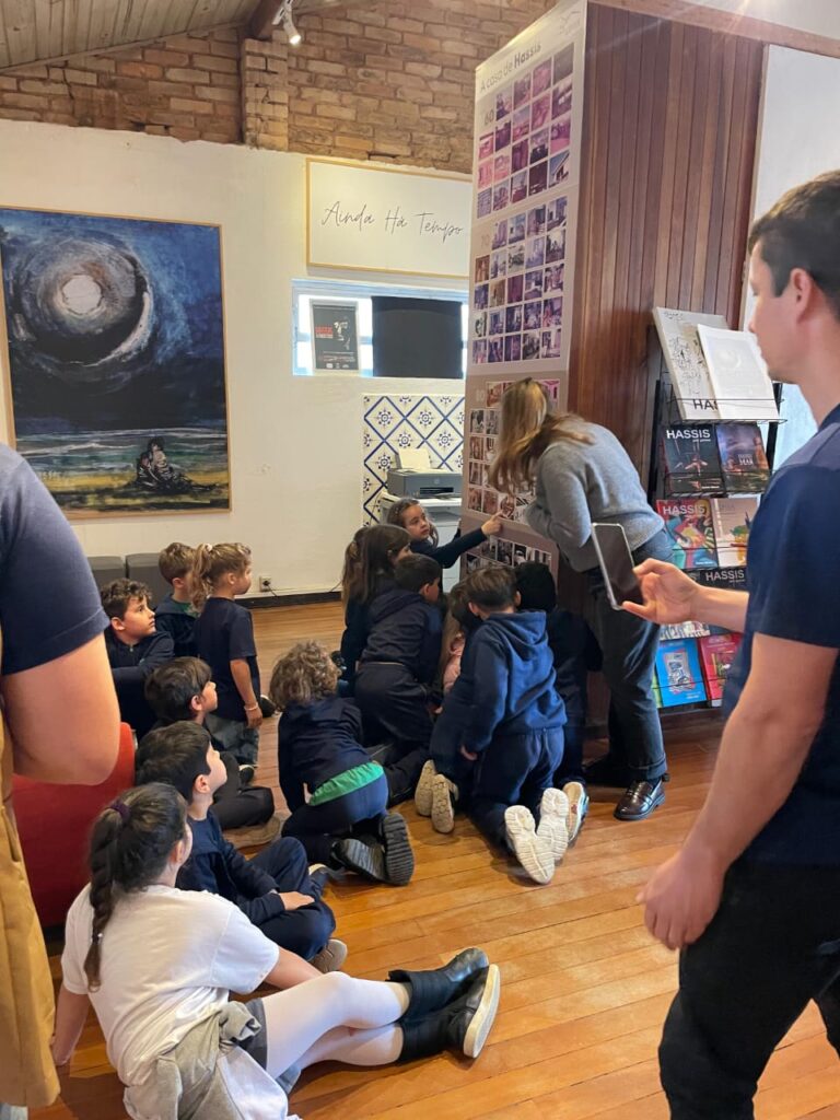 Ao todo, visitaram a sede da Fundação Hassis, que fica no bairro Itaguaçu, 650 crianças de 3 a 7 anos e adolescentes de 15 a 18 anos. No passeio pelas salas, os alunos puderam apreciar a Exposição Intenso e Leve Traço de Hassis, mostra que inclui uma série de pinturas sobre paisagens marinhas.
