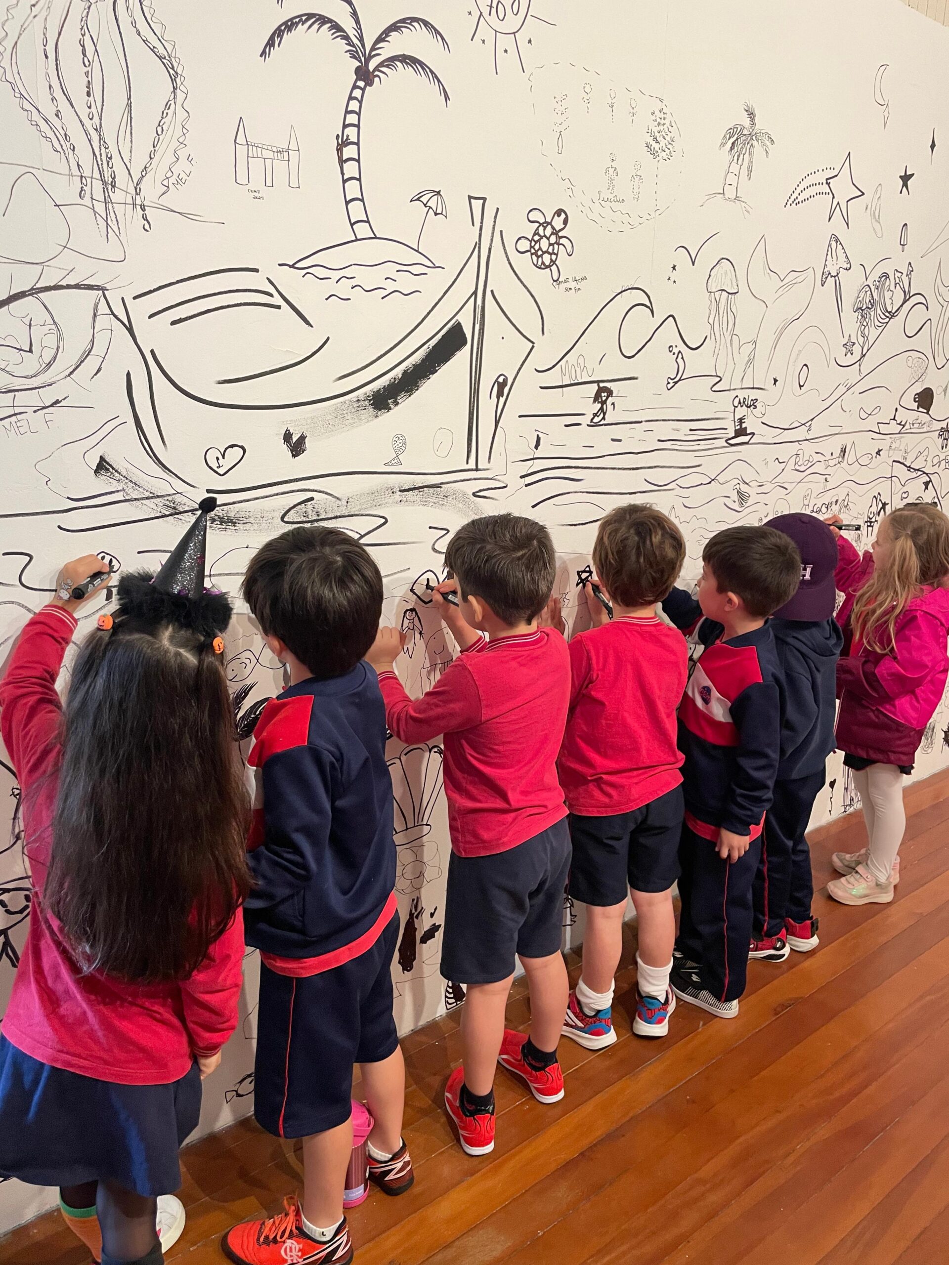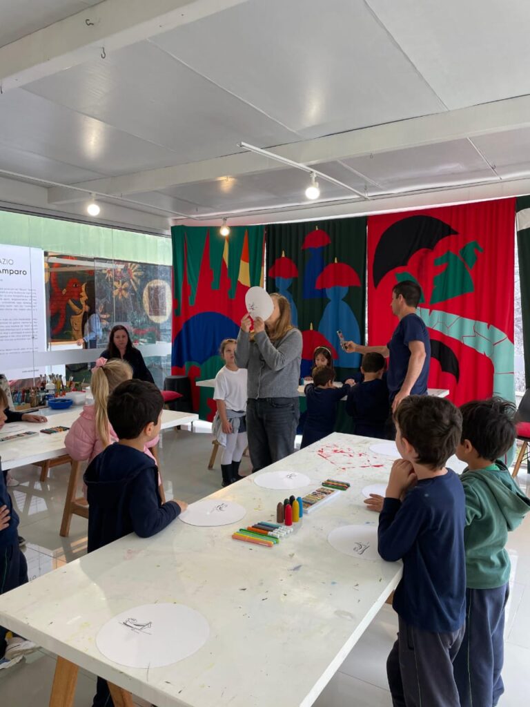Para encerrar a viagem, os visitantes foram levados até o Ateliê, espaço dedicado às atividades lúdicas como desenhos, pinturas, colagens. “Um ambiente para expressar o conhecimento e descobertas que eles realizaram em torno das obras em exposição e outros objetos como a Porta Secreta”, acrescenta Monique Fonseca, diretora artística da Fundação.