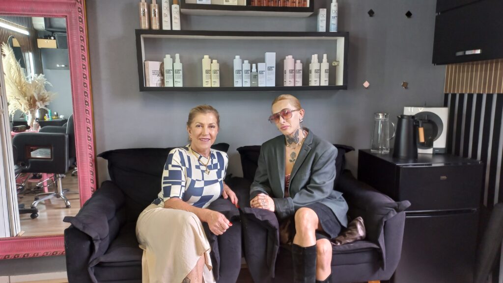 Novidades incluem serviços de cabelo e maquiagem personalizados oferecidos pela profissional Xuxu. Na foto, com a empresária Maria Cristina Amaral, a Cris.